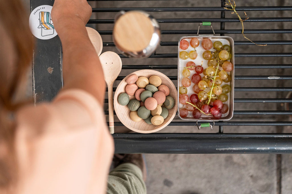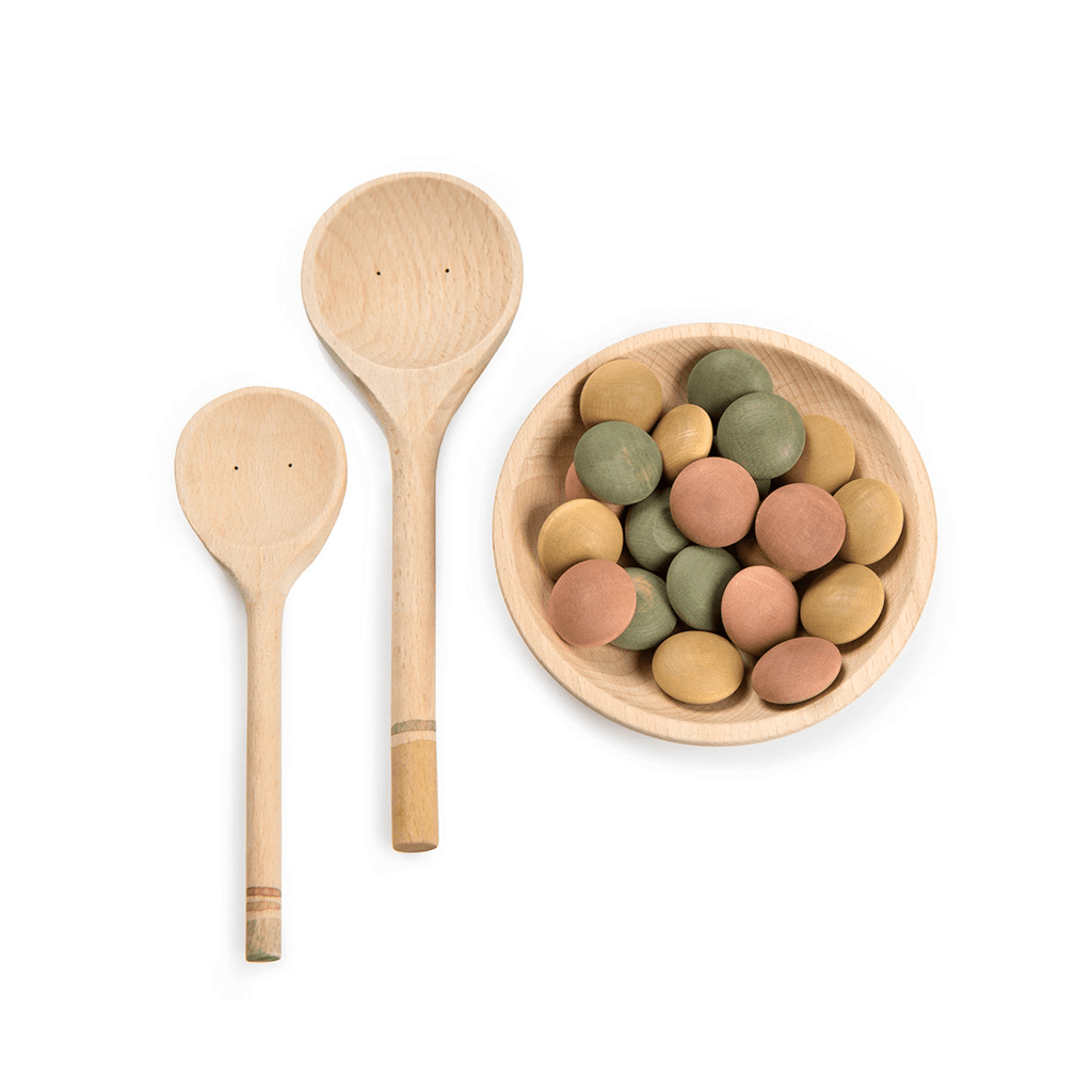 A set made up of a plate, two spoons and 24 pieces of yummy food. It’s a great addition to symbolic play, but due to its open-ended nature, it can become anything that children desire at any given time.