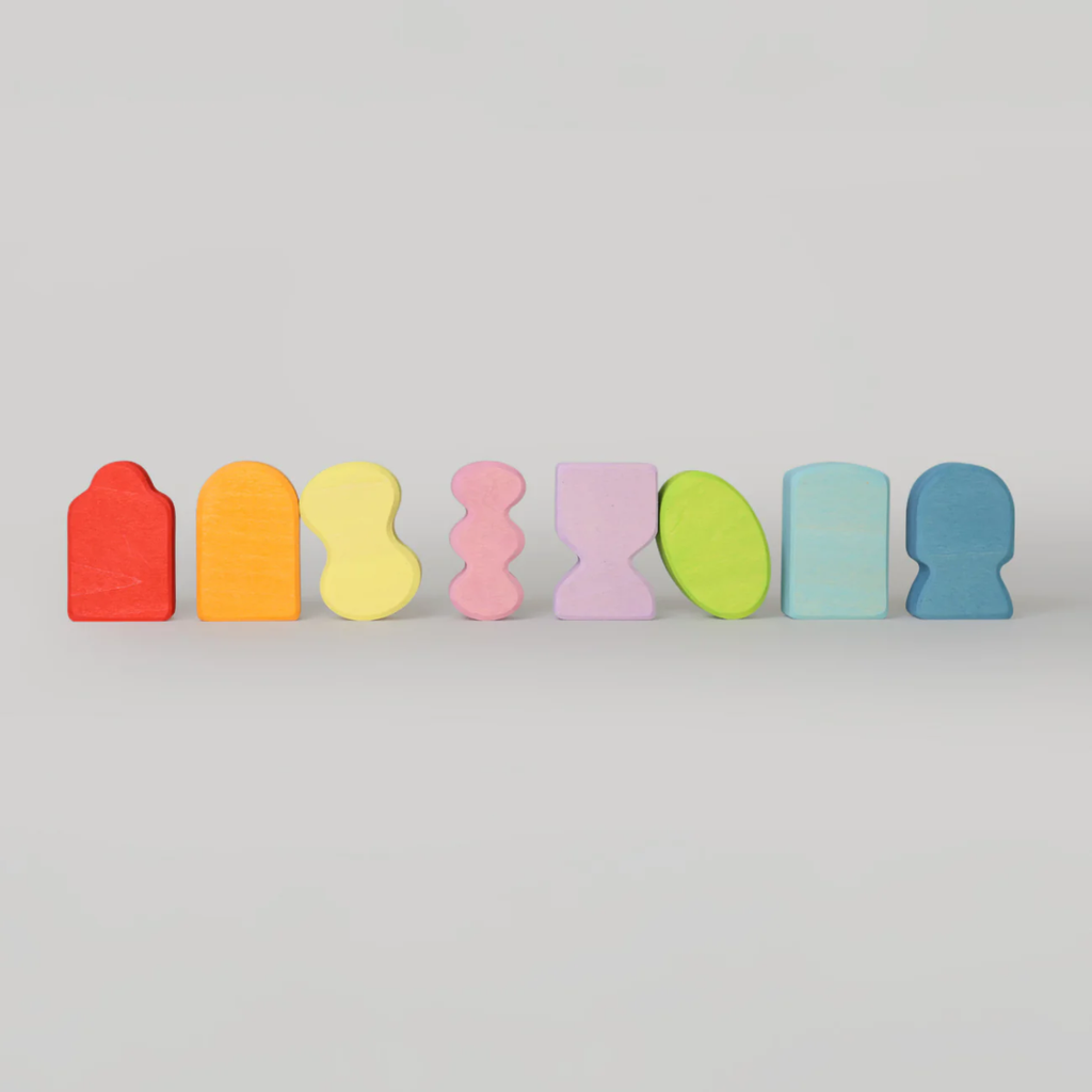 Windows give us a view of the world. Our windows in various colours and shapes are essential building elements for all types of buildings. They bring light into dark rooms and enliven monotonous facades. The Building Set is a first shape puzzle to introduce young children to matching shapes and colour harmonies. Wood: lime wood, colour glazed